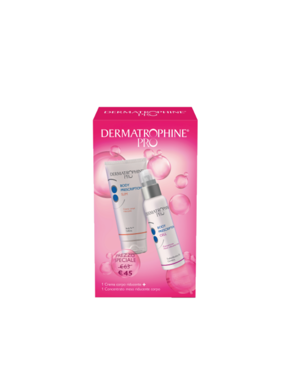 Reducing body cream and reducing meso concentrate. Body cream with reducing action thanks to the synergy of slimming active ingredients with hot/cold effect and an ideal body serum to combat imperfections caused by localized adiposity. Two products for a lipolytic, draining and smoothing action that promotes fat metabolism.