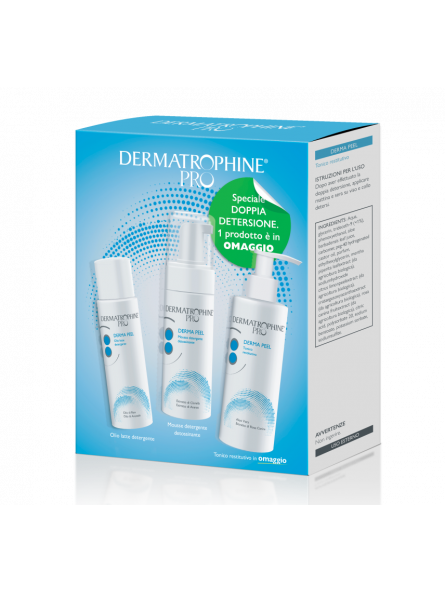 DERMA PEEL DETERGENT MILK OIL is used on the dry face (even eyes) massaging it gently, insisting on areas with greater impurities. Moisten your face with water, and the oil will turn into a milk. Now apply DERMA PEEL MOUSSE DETOXIFYING and massages with circular movements. Rinse with warm water and dab the skin with a towel. After the double cleansing, apply DERMA PEEL Returnive soothing facial tonic on face, neck and dècollète.