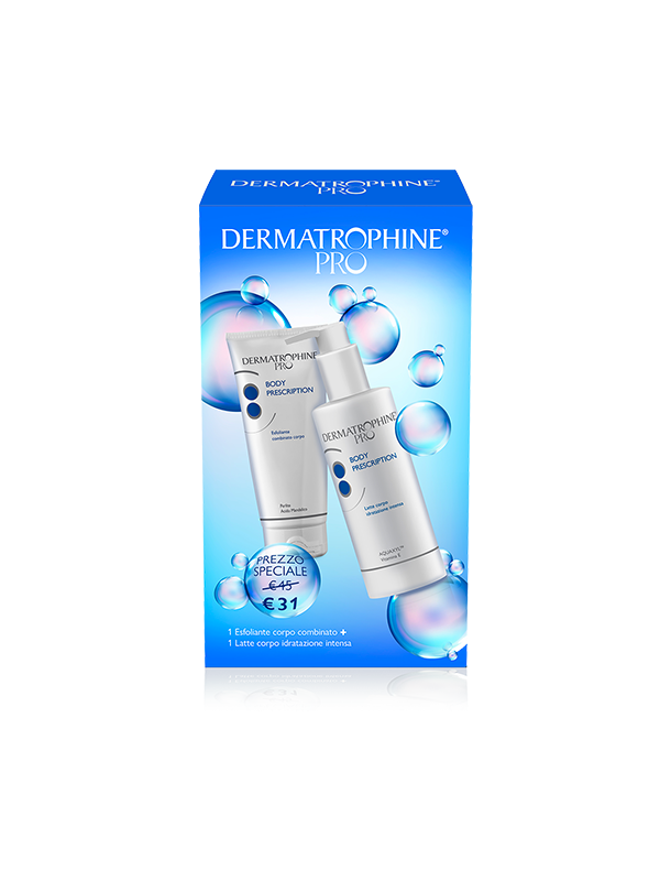 Esfoliante combinato corpo e Latte corpo idratazione intensa. Uno scrub meccanico che elimina in maniera delicata le cellule morte e un latte corpo dall'innovativa texture Geltrap™, non unta, emolliente ed altamente idratante che rinforza la barriera protettiva cutanea. Due prodotti per una pelle morbida ed elastica