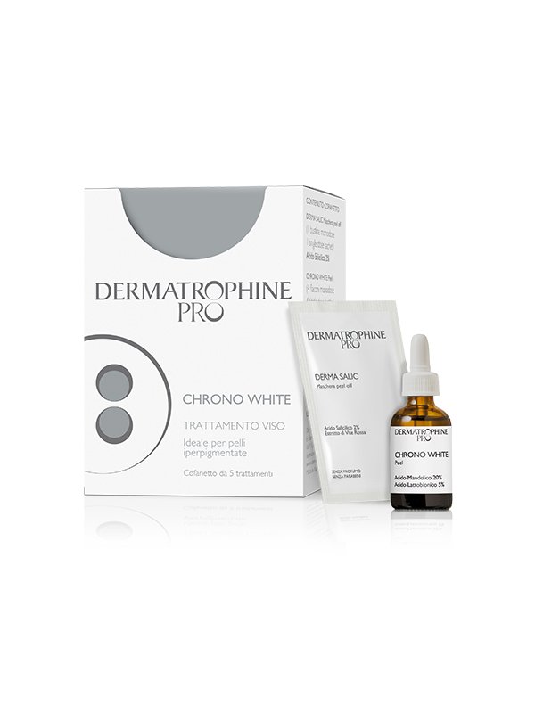 Trattamento Depigmentante ideale per pelli con macchie senili, melasma, ipercromie da chrono e photo aging. Adatto a tutti i fototipi. Rallenta la produzione di melanina, stimolando la formazione di collagene ed elastina.